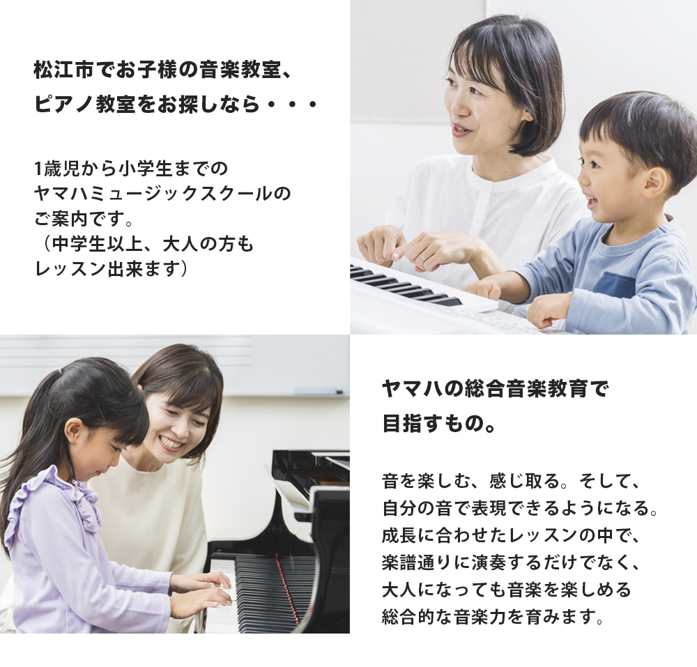 松江市でお子様の音楽教室をお探しなら・・・。1歳児から小学生までのヤマハミュージックスクールのご案内です。(中学生以上、大人の方もレッスンできます。)