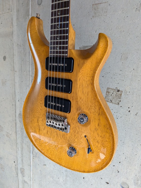 ボディ、ネック共にコリーナ材を使用しP-90を3発搭載!!