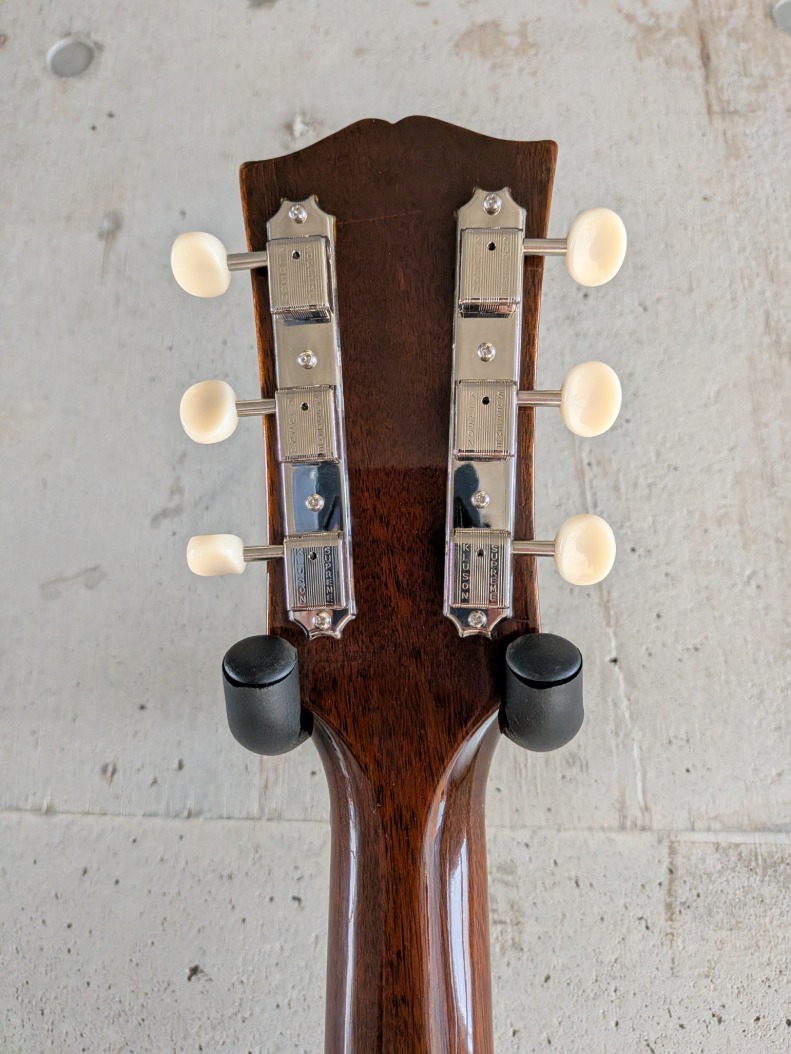ペグ交換に伴い、ペグ穴からチップした跡が見られますが、その他は同年代のモデルと比較すると非常に綺麗なコンデションです。