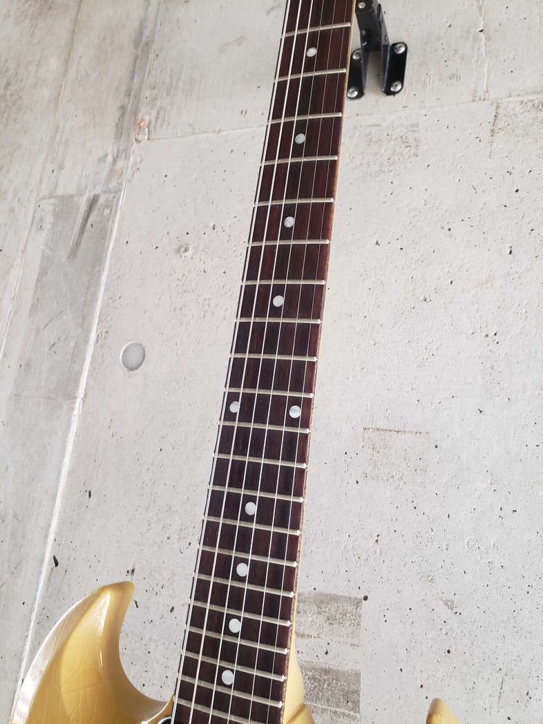 薄いボディとP90が生み出す歯切れの良さと相まってロックに持ってこいのサウンドとなっております。
