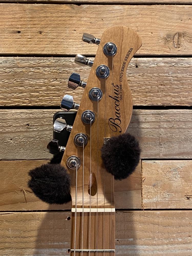ローステッドメイプルとはメイプルを高温で加熱処理して材の中の水分や油分を揮発させることにより剛性を高めた材。ネックに使用されるとその効果は安定性だけでなくサウンドにも及び、豊かな生鳴りと経年変化したビンテージのようなこなれたトーンを生み出します。高級機種で使われることの多いこの本格派仕様をリーズナブルな価格帯に落とし込んだBacchusの新しい製品ラインナップです。