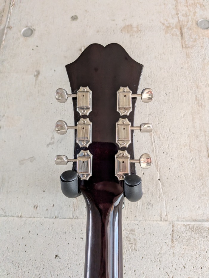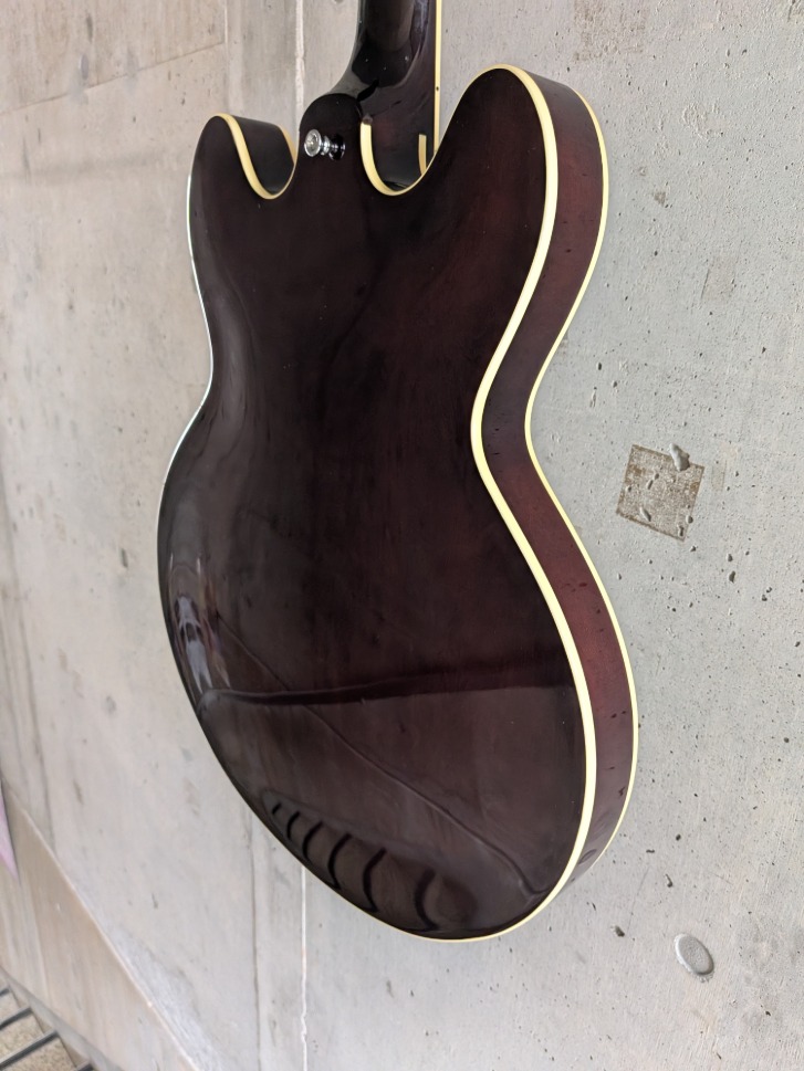 国産1991年製エピフォン カジノヴィンテージ 当時の通常モデルはメイプルネックに17フレットジョイントでしたが、ヴィンテージの名が付くこちらのモデルは16フレットジョイント、マホガニーネックが採用されています。 多少の使用感は有りますが大きな傷、打痕等は無く当時モデルとしては綺麗なコンディションを保っています。 あまり使われていなかったのかフレットの減りも少なくプレイコンディションも良い状態です。 ※ヘッドロゴ周辺に若干の白濁があります ※トラスロッドは左右余裕がありますが締める方向にはあと1回転程度となります。 ※オリジナルハードケースが付属します。 ※こちらの商品は米子店在庫商品となります。 お気軽にお問い合わせ下さい。 ヤマハパルス米子楽器社米子店 ℡0859-33-8881 Mail yonago@ypyg.com