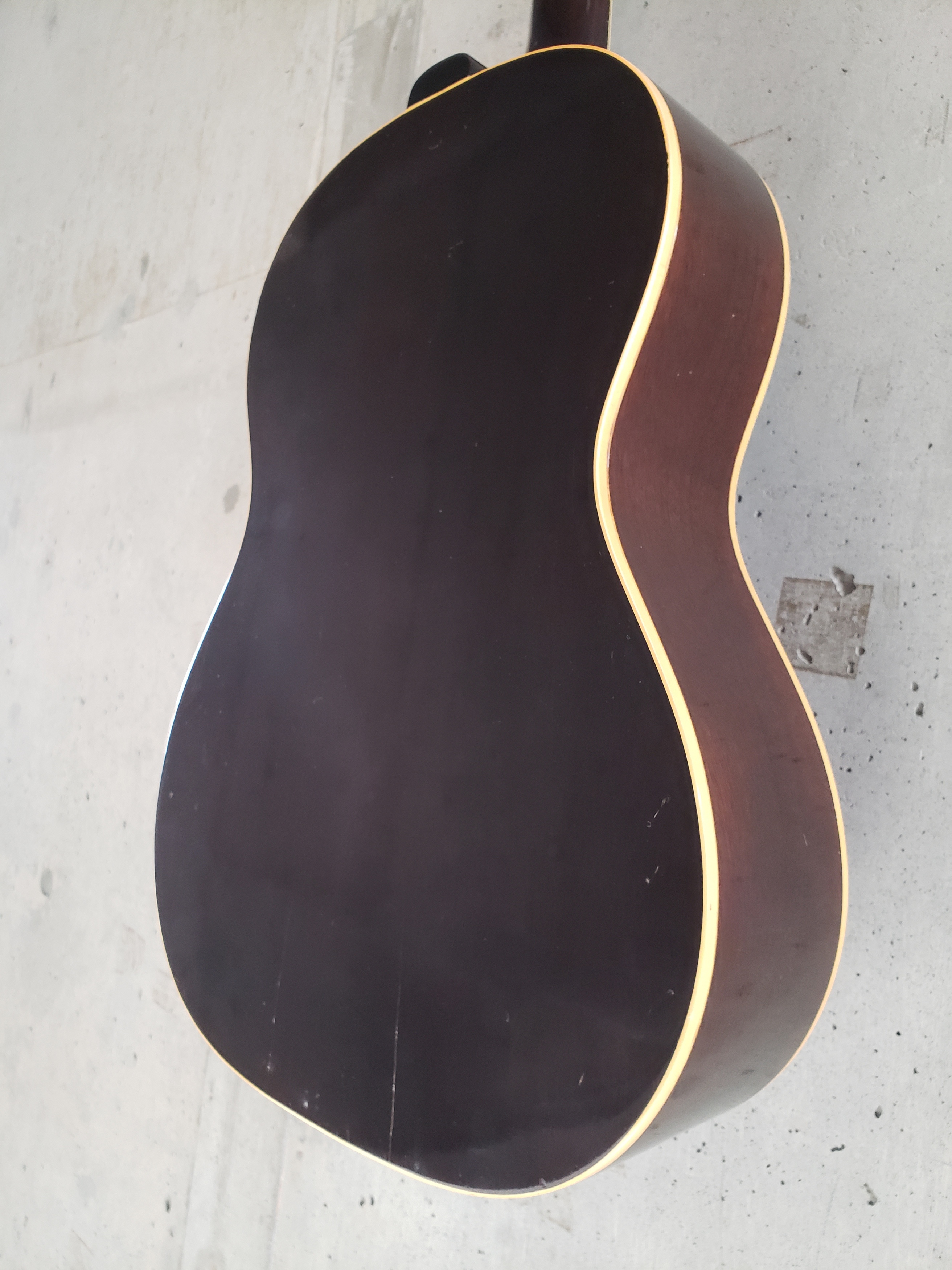 ブリッジが交換されている他、裏板に割れの補修跡が有りますが、60年代のギターとしては良い状態です。